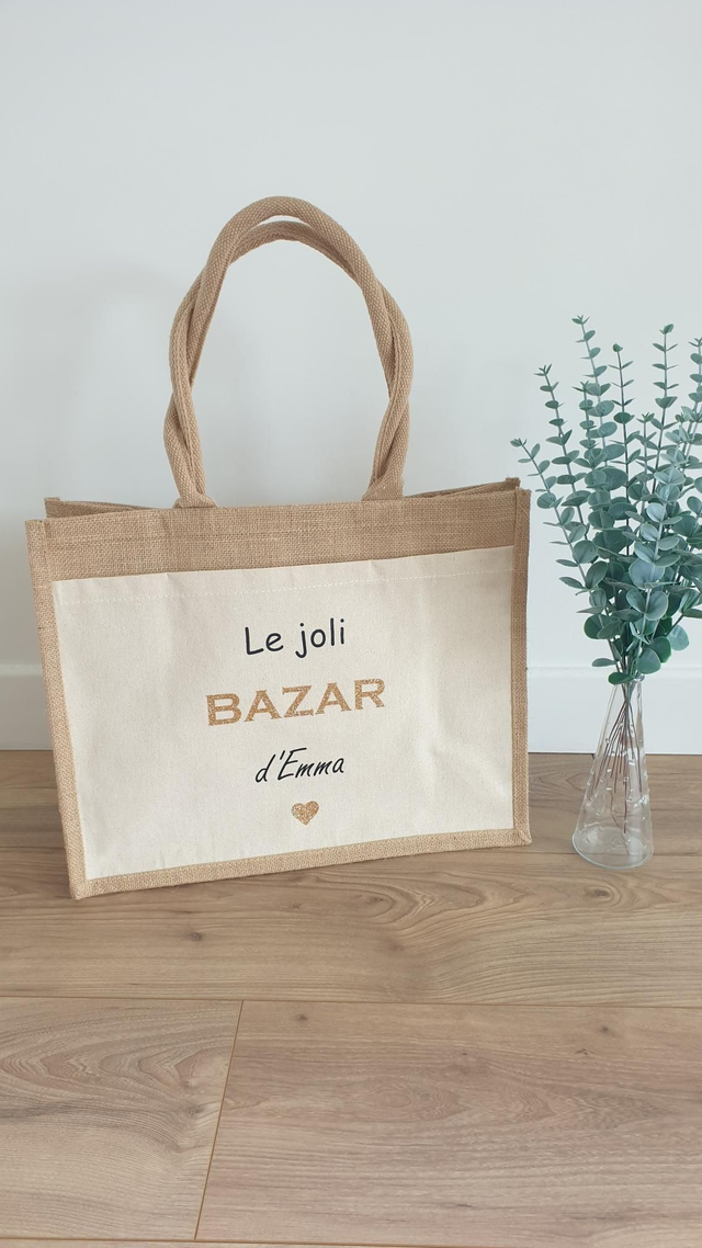 Maxi Cabas en toile de jute personnalisable avec une poche à l'avant 100% coton