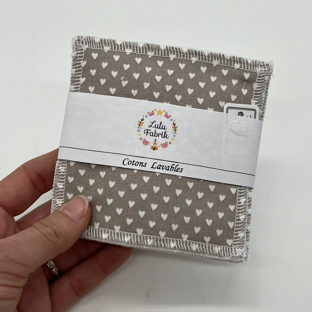 Lot de 7 cotons démaquillants petits cœurs taupe