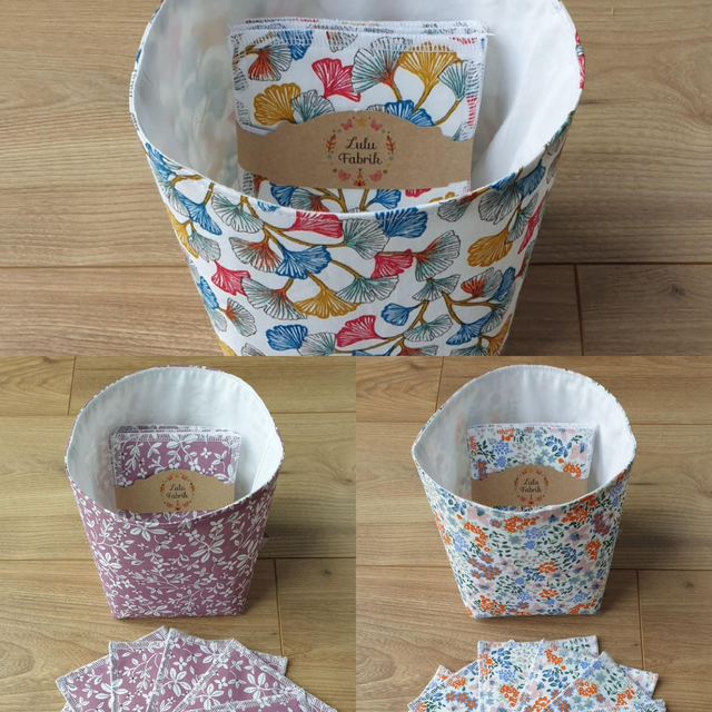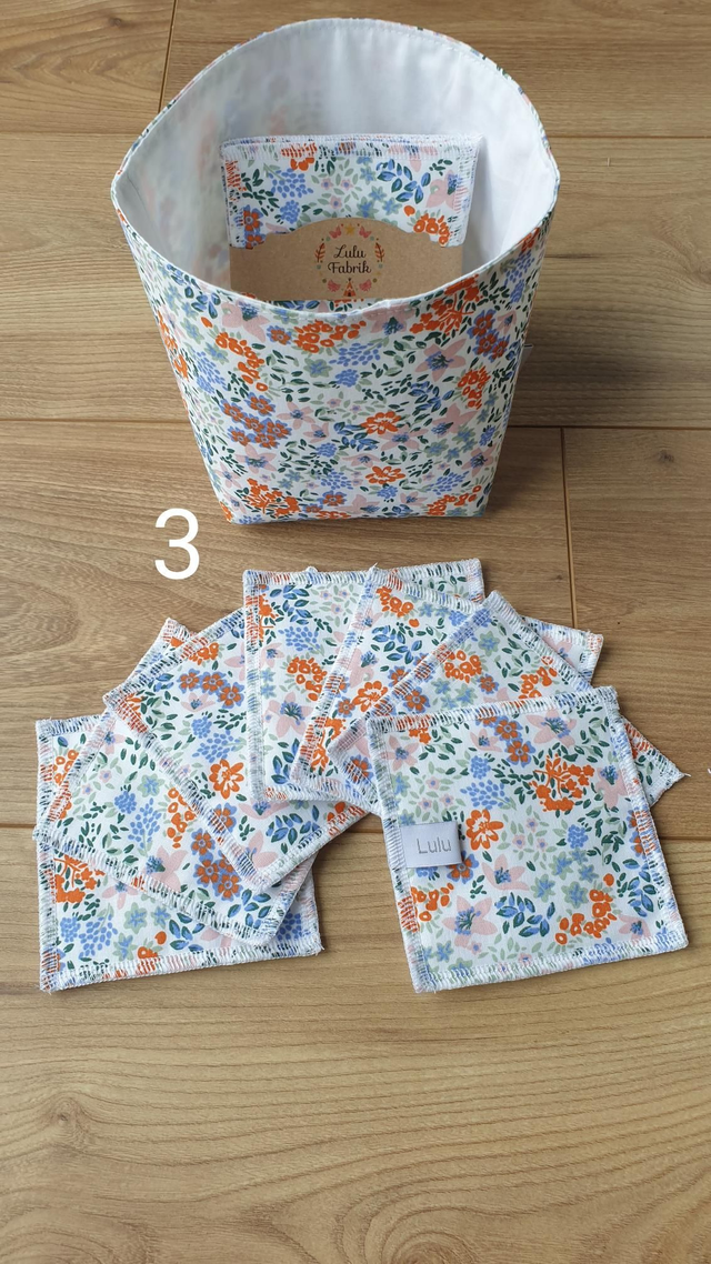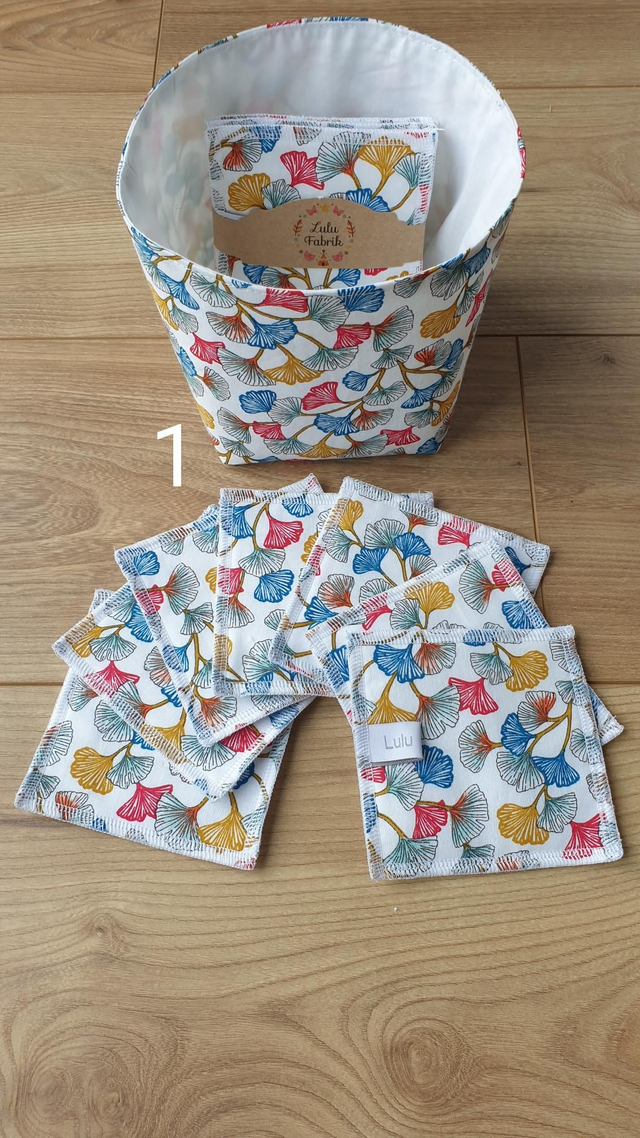 Coffret boîte rectangle 4 cotons + 1 serviette visage + 1 chouchou + 1 pochette imperméable éventail