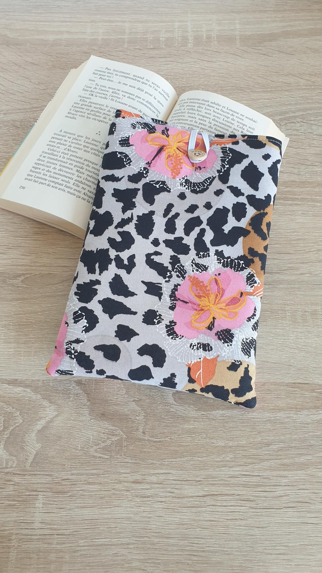 Pochette/ couvre livre léopard fleurs